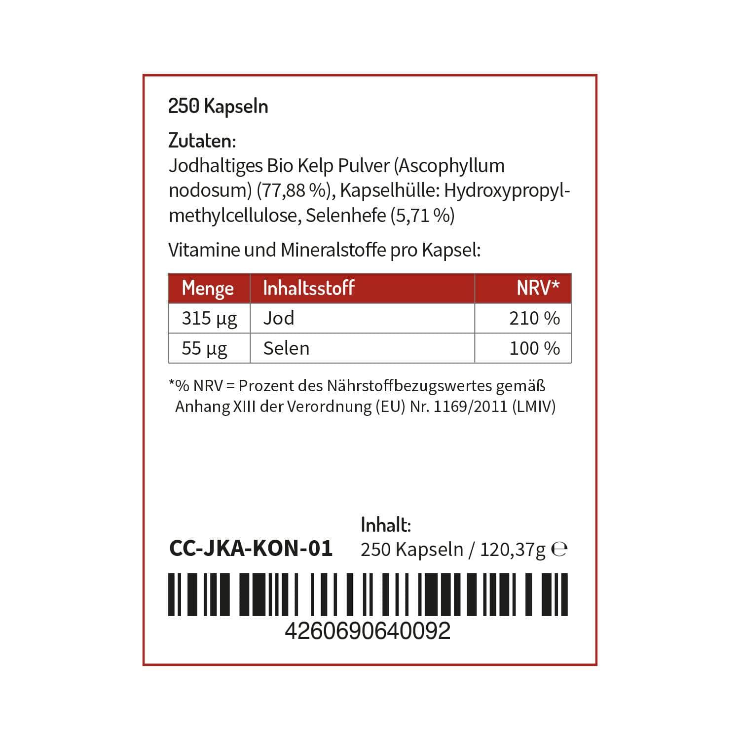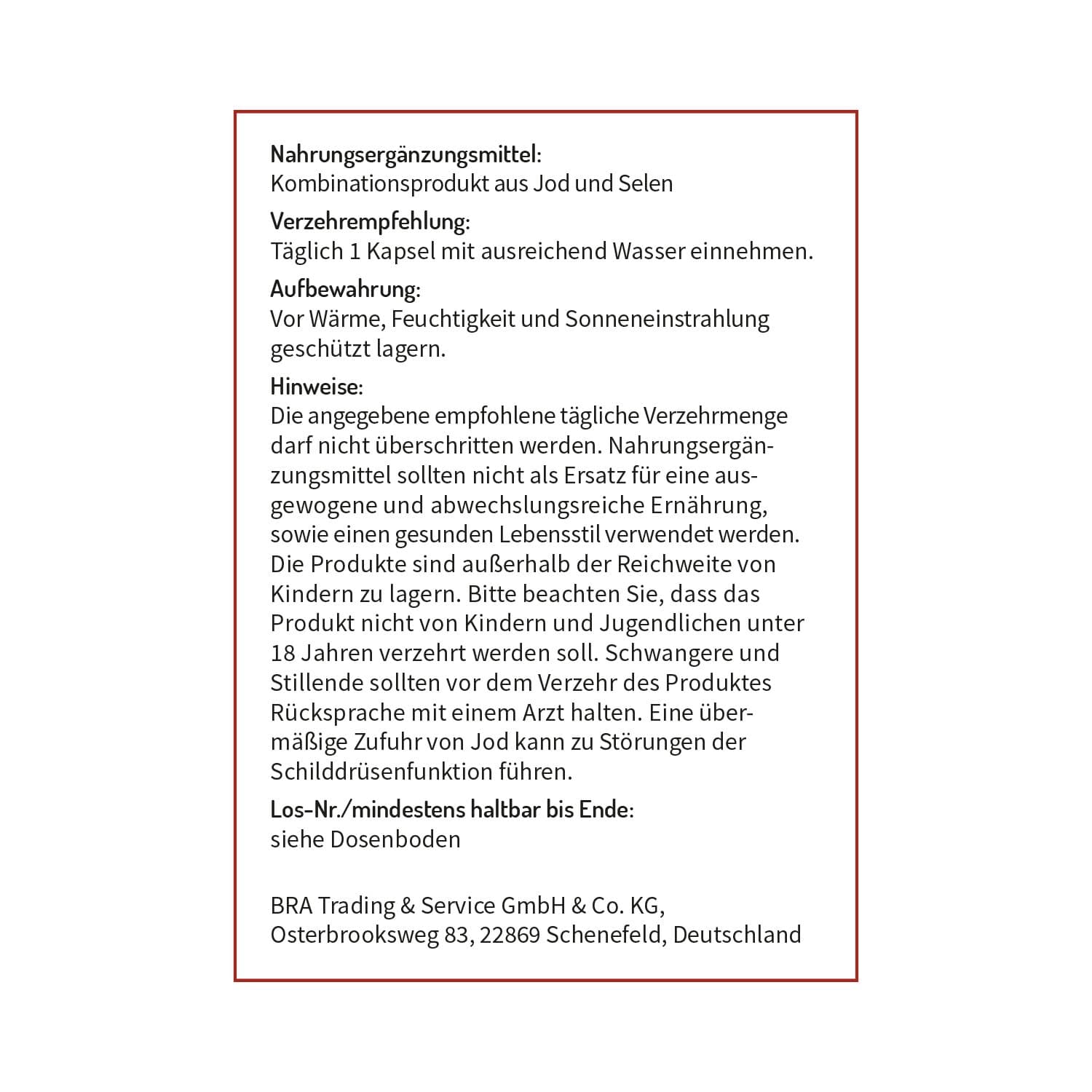 Bei der Herstellung dieses Produktes verwenden wir hochwertiges Jod aus der Kelp Alge sowie Selenhefe. Wie bei allen unseren Produkten erfolgen Abfüllung und Qualitätskontrolle unter strengsten Vorgaben in Deutschland.